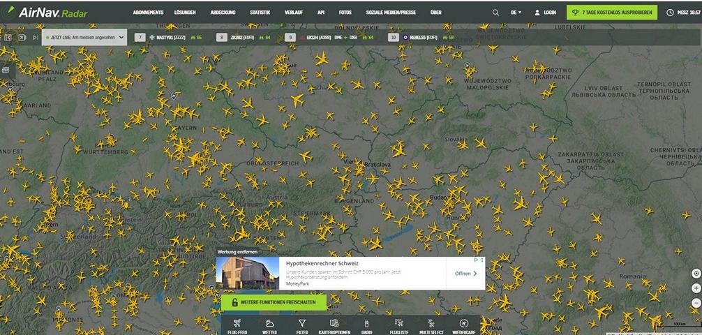 Mit mehr Daten kostenpflichtig: flightradar24.com/premium